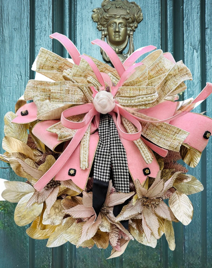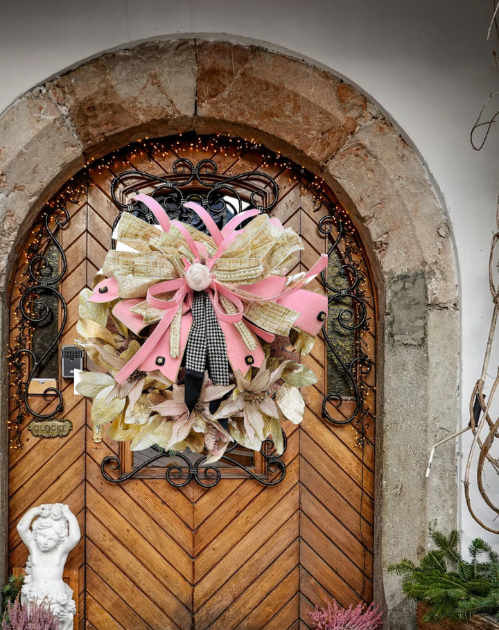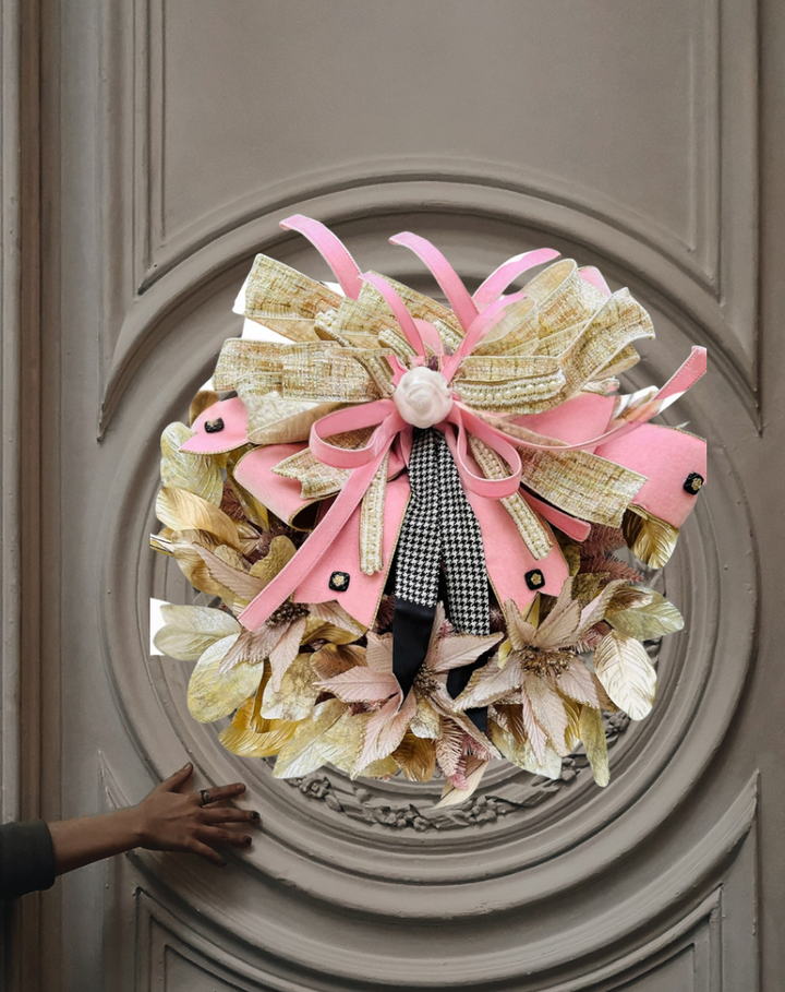 Introducing Château Chanel, the second design in our exclusive three-piece Chanel Capsule Collection. Elevated, timeless, and impossibly chic—this couture-inspired wreath brings Parisian elegance to life. Think runway textures, heirloom bows, and the kind of polish only Chanel embodies. A true collector’s piece, Château Chanel is designed for those who crave sophistication with a touch of grandeur.