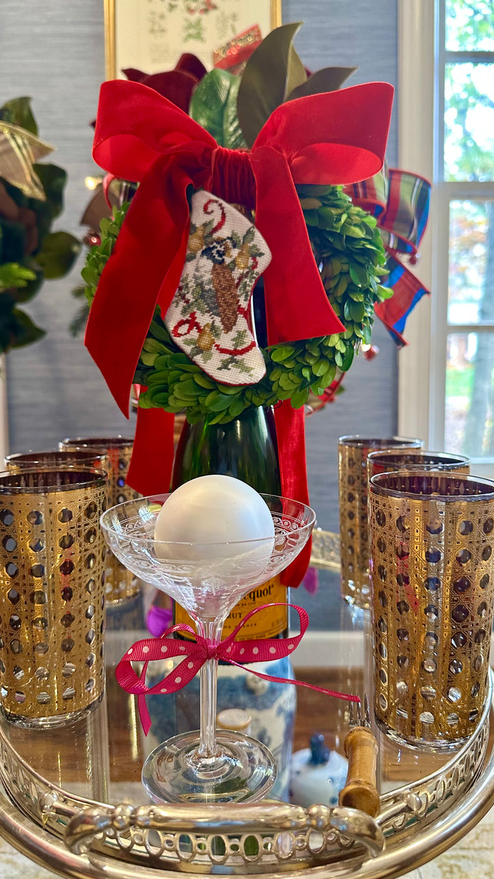 Style Tip: Tie to a bottle of bubbly, a doorknob, or a guest chair for instant festive polish.